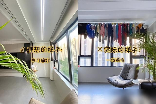 可住进去就露馅了:家有老小,衣服一波接一波晾,升降功能根本用不上,常年杵在那儿当门神。